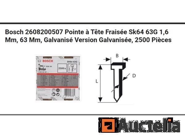 Verzonken punt Merk: BOSCH Artikelnummer: SK64 63G Hoeveelheid: 2500 stuks Afmeting: 1,6 mm x 63 mm Conditie: Nieuw Verzending: Tarief A