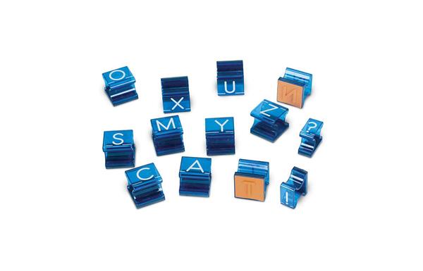 26 plastic letterstempels - kapitalen (afm. 2,5 x 2,5 x 2,5 cm) 8 leestekenstempels (afm. 2,5 x 2,5 x 2,5 cm)