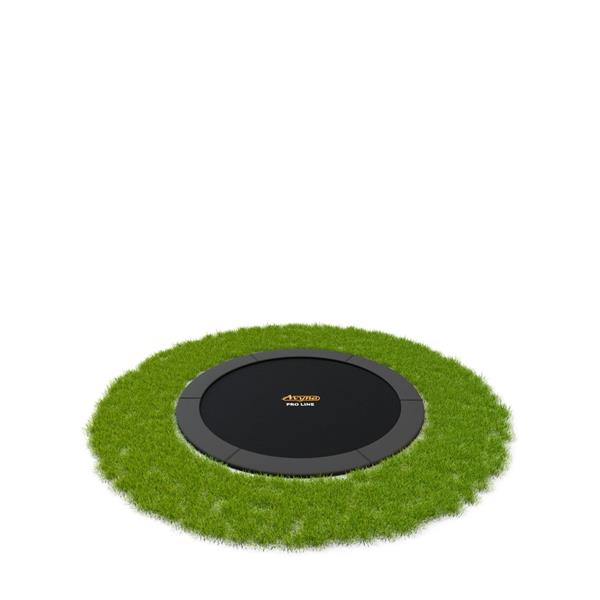 De Avyna Pro-Line flatlevel trampoline is een ingraaf trampoline. ‘Flatlevel’ geeft aan dat de trampoline in zijn geheel gelijk valt met het maaiveld. Het gehele frame wordt 22 cm in de grond geplaatst. Hiervoor dient een kuil gegraven te worden die iets kleiner is dan de aangegeven trampolinemaat. In dit geval een cirkel met een diameter van 305 cm. De zijkanten van de kuil worden voorzien van harde PVC beschermingsplaten. Hierdoor ontstaat er een degelijke constructie om de Avyna Pro-Line flatlevel trampoline voor een lange periode stevig te plaatsen.