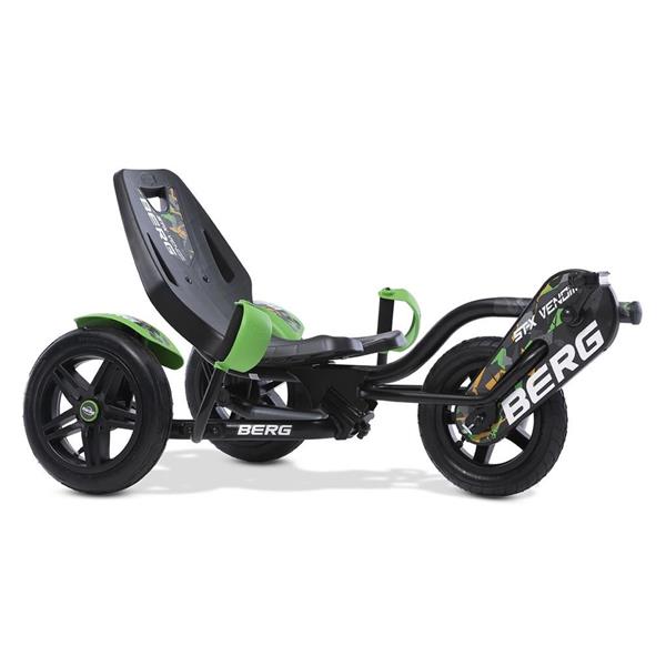 Wil je echt iets anders en stoers qua skelter? Kies dan voor de BERG Street-X Venom voor de vetste moves. Dit groene scheurmonster stuur je door met je lichaam te bewegen zonder balans te verliezen. Dit is geïnspireerd op het meebewegen in de bochten bij motoren en race-auto's. Daarnaast heeft de BERG Street-X luchtbanden waardoor je extra comfortabel rijdt. Door het BFR-systeem kun je met de pedalen remmen, maar ook direct na stilstand achteruit rijden. Geef je kind iets speciaals met deze unieke skelter.