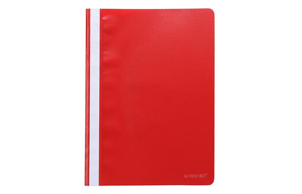 Plastic bestekmap in A4 formaat met doorzichtige voorkant, snelhechter en label aan de zijkant.