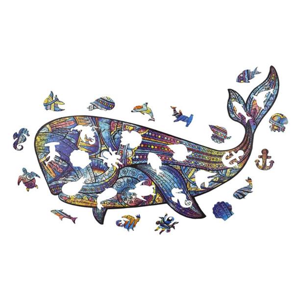 Blauwe vinvis 42 x 25 cm - Houten puzzel (200 unieke stukjes)