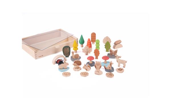 37-delige set met bos speelfiguren (afm. box 27 x 18,5 x 5 cm) 1 houten opbergbox