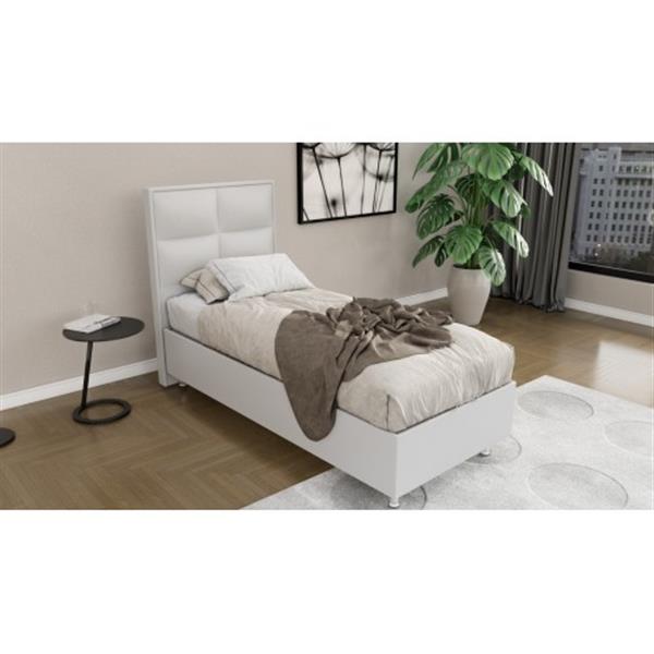 Compleet 1-persoons Opberg Boxspring Zwart-WitHeeft u een kleine slaapkamer of last van ruimtegebrek? Of wilt u gedurende bepaalde seizoenen uw spullen op een degelijke manier opbergen? Dan biedt deze opberg boxspring de perfecte oplossing. Deze slimme uitvinding is de laatste trend op het gebied van slaapkamerinrichting. De boxspring is een moderne en elegante combinatie met opbergruimte, uitgevoerd in kunstleder en voorzien van een hoofdbord met blokken. De 1-persoons boxspring combinatie wordt compleet geleverd!Eigenschappen:- Prachtig matras van 20 cm dik met een afneembare wasbare anti-allergiehoes.- Kwalitatief hoogwaardig koudschuim matras HR45 voor een scherpe prijs. Dit koudschuim matras biedt extra veerkracht en ondersteuning, waardoor het ook geschikt is voor mensen met nek- en spierklachten. Het matras is voorzien van een luxe dubbeldoeks afritsbare hoes, doorstikt met 300 gram/m2 hollow fiber. - Matrasdikte: 20 cm, hardheid: Medium.Inhoud van de boxspring:1x Luxe hoofdbord 1x Stalen opbergbox1x Luxe koudschuim HR45 MatrasLet op! Levertijd voor speciale maten is 6 tot 8 weken. Standaard maten van 90x200 en 80x200 zijn op voorraad en snel leverbaar.In de showroom is er keuze uit meer dan 500 verschillende kleuren en stoffen, zonder extra kosten.