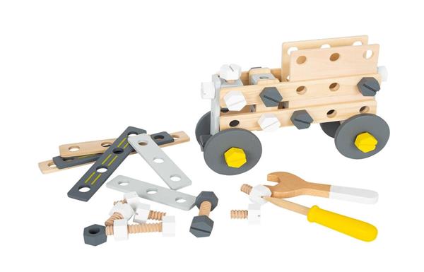 Het perfecte creatieve speelgoed voor jonge, ambitieuze monteurs! Met dit houten bouwpakket kunnen jonge knutselaars zich creatief uiten en hun eigen unieke constructies maken. Of het nu een tractor, een vliegtuig of een pony is - er zijn geen grenzen aan creativiteit. De gehele set kan gesorteerd worden en netjes opgeborgen worden in de meegeleverde doos.