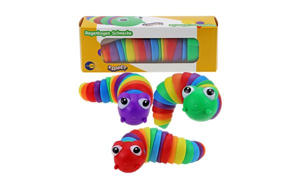 Deze schattige slak zal in zijn trendy regenboogkleuren een hit zijn bij jonge kinderen. Het is extreem flexibel en kan in bijna elke richting worden gedraaid. De slak maakt een grappig 'klik-klak'-geluid dat kinderen zal aantrekken. Versterkt de oog-handcoördinatie en doet stress verminderen.