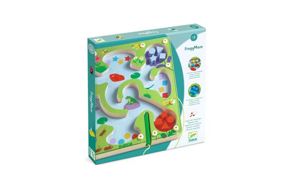 Froggy Maze is een magnetisch sorteerspel voor kinderen vanaf 3 jaar. Met de magnetische pen verplaatst het kind de stukken op basis van hun vormen en kleuren om ze op te ruimen in de 8 vakken van het bord.