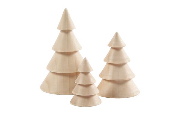 3 houten kerstbomen (afm. 5 x 3,5 cm, 7,5 x 5,5 cm en 10 x 6,7 cm)
