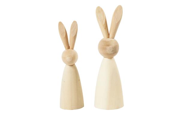 Set van 2 houten konijnen in 2 verschillende maten. Beiden gemaakt van licht hout.