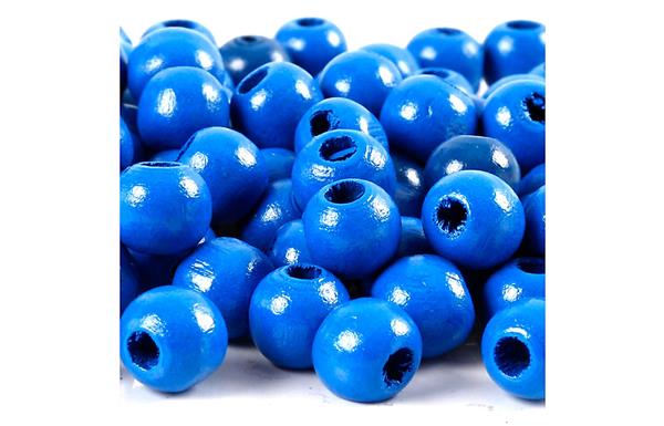 40-delige set houten kralen. Keuze uit de kleuren geel, rood, blauw, groen of wit (afm. diameter 1,2 cm, gatgrootte 3 mm)