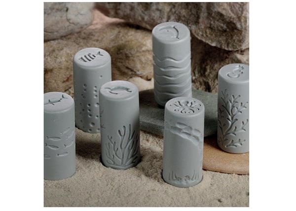 Druk en rol met deze rollers in deeg, klei, zand om prachtige scènes te maken. Met deze rollers oefenen kinderen hun fijne motoriek. Kinderen kunnen experimenteren door hard of zacht te drukken en op verschillende manieren te rollen. De rollers zijn gemaakt van een duurzame hars/steen mix waardoor ze zowel binnen als buiten kunnen gebruikt worden. Ze kunnen gewoon afgewassen worden met water en zeep.