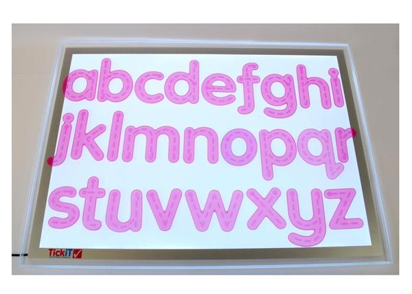 Transparante roze silicone letters die sterk, zacht en buigzaam zijn. Ze kunnen gebruikt worden in de zandbak, op de vloer, lichtbak en ook in het water. De pijlen geven de richting aan voor de juiste lettervorming. Deze silicone letters zijn heel makkelijk schoon te maken, zelfs in de vaatwasser vertonen ze erna geen schade. Winnaar PPS Silver Award 2014