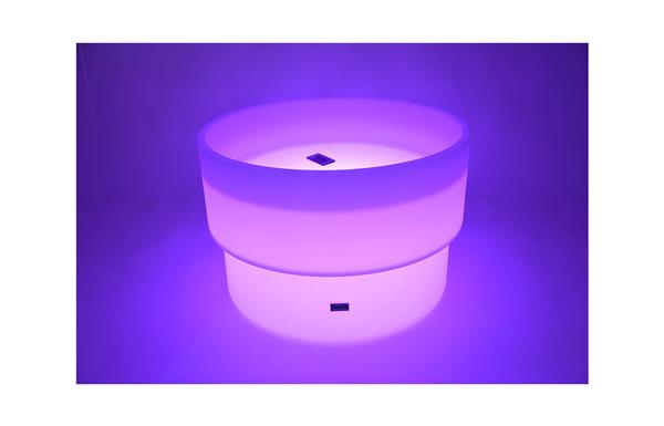 1 lichtgevende watertafel (afm. diam. 75 cm en hoogte 50,5 cm, diepte watergedeelte: 15 cm) 1 afstandsbedeining
