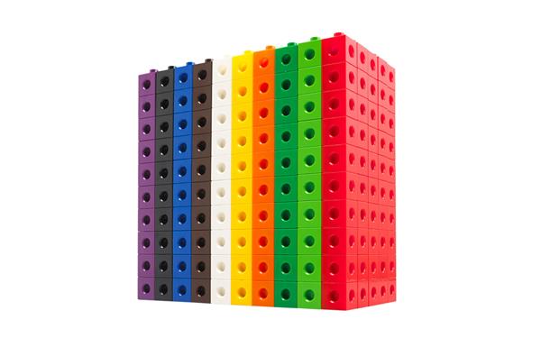 Linking cubes kan je inzetten bij rekenen en patroon- of sorteeractiviteiten. Elke kubus heeft ronde uitsparingen en kan langs alle kanten met elkaar verbonden worden. De kubussen worden geleverd per 100 (10 x 10 kleuren) of 500 (50 x 10 kleuren).
