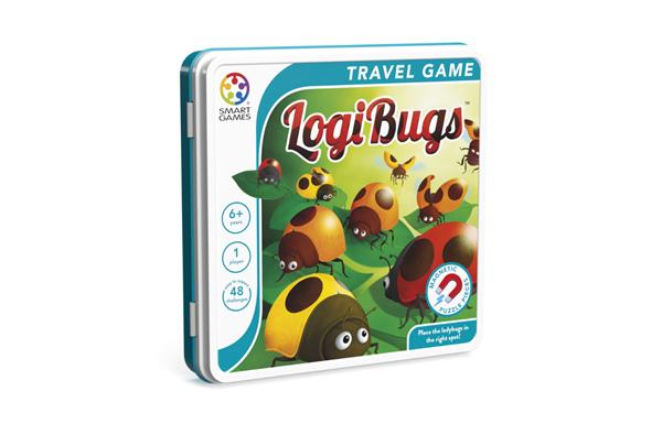 1 speelset Logibugs (Travel - Magnetic Games - Tin Box): 1 metalen bord (opbergdoos) 12 magnetische lieveheersbeestjes 1 boekje met 48 opdrachten en oplossingen