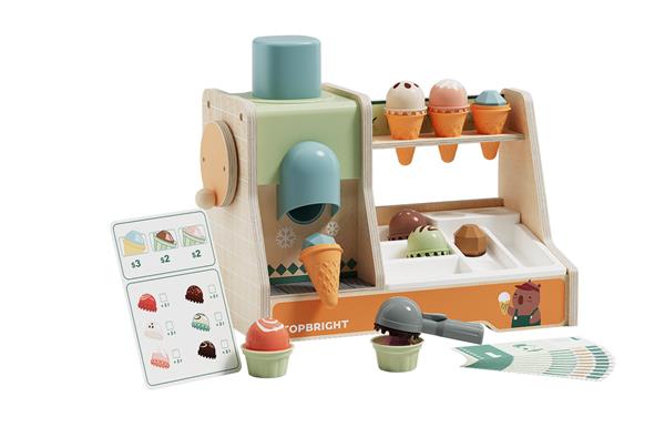 Met deze ijswinkel maken kinderen vanaf 3 jaar hun eigen heerlijke ijsjes. Plaats een bolletje ijs, draai aan de hendel en plop – het bolletje valt zo in het hoorntje! Een fantasierijk en interactief spel waarmee kinderen hun creativiteit én hun eerste rekenvaardigheden ontwikkelen.