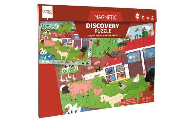 Prachtige magnetische puzzel van 30 stukken in thema 'boerderij'. De puzzel is gemaakt van dik karton en zit in een vrolijke stevige doos. Als je klaar bent met puzzelen, kan je als een echte detective op zoek gaan naar de voorwerpen die verstopt zitten. Wat je allemaal kan zoeken, staat afgebeeld op de rand van de puzzel.