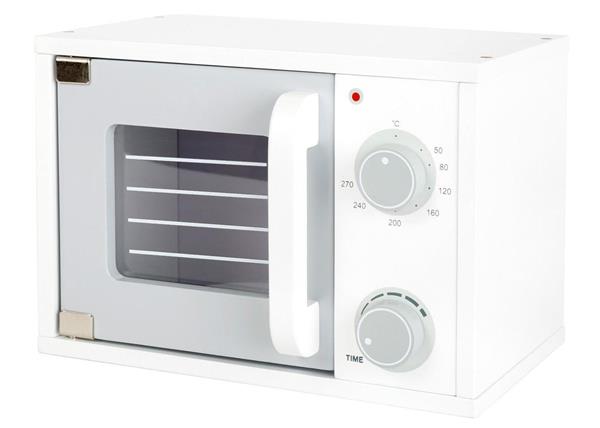 Met deze houten microgolfoven maak je je keukentje echt compleet. Stop er eten in en draai het rond op het bord of doe het deurtje toe. De knoppen maken een 'klik' geluid bij het draaien.