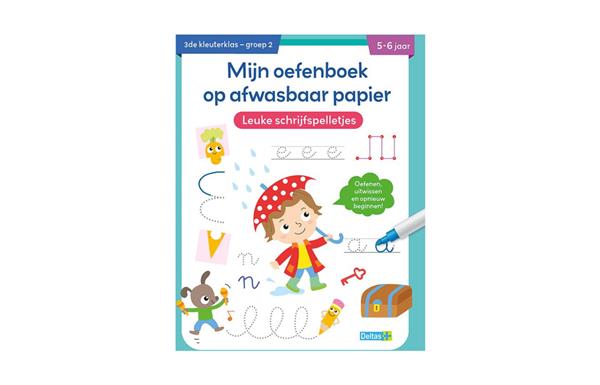 Dit leuke oefenboek op afwasbaar papier is herbruikbaar en dus ideaal voor kinderen die hun schrijfvaardigheid willen oefenen. Laat je kind met een stift de oefeningen oplossen, uitwissen en opnieuw beginnen. Eindeloos oefenplezier verzekerd!