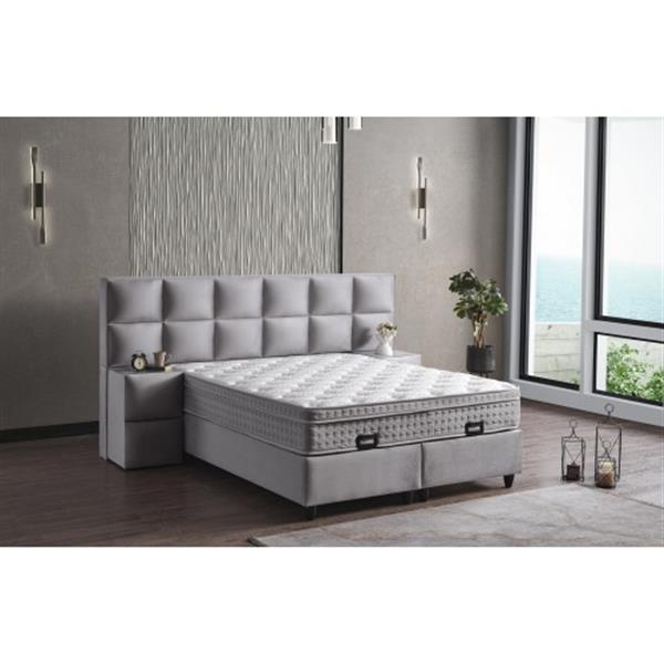 Deze Zand boxspring, met luxe velvet bekleding, biedt niet alleen een heerlijk matras maar ook een buitengewone hoeveelheid opbergruimte; tot maar liefst 1010 liter. Deze royale ruimte is ideaal voor het opbergen van beddengoed, kleding, schoenen of speelgoed.De Zand boxspring met opbergruimte wordt geleverd als complete set, inclusief een luxe 7-zone matras met 500 pocketveren per m², wat zorgt voor een buitengewoon comfortabele slaapervaring!De complete set bevat:- Hoofdbord Zand- 7-zone matras met ingebouwde topper- Onderstel met opbergruimte (2-delig)- Stevige boxspring poten (12x)- Gratis leveringMatras voor een betere nachtrust:De Zand wordt geleverd met een luxe matras bestaande uit maar liefst 17 verschillende lagen, waaronder 500 pocketveren per m², koudschuim en traagschuim. Dit garandeert een optimale ondersteuning van de wervelkolom en een correcte slaaphouding. Hierdoor verminderen nek-, rug- en schouderklachten aanzienlijk. De 7 zones bieden extra ondersteuning aan schouders, heupen en benen. Het matras heeft een dikte van circa 27 cm. Het topdekmatras is aan het matras bevestigd, wat verschuiving voorkomt en een ongestoorde nachtrust mogelijk maakt.De boxen:Het Zand-model heeft 2 opbergboxen die vanaf het voeteneinde geopend kunnen worden. De handige opbergruimte onder het gehele oppervlak van het matras maakt het mogelijk om bijna alle gewenste spullen netjes en handig op te bergen. Deze boxspring is vervaardigd uit een volledig metalen frame, gestoffeerd met luxe velvet stof, wat resulteert in de perfecte combinatie van stevigheid en uitstraling. Dankzij de gasveren die helpen bij het openen van de boxen, is de enorme opbergruimte van dit bed extra gemakkelijk toegankelijk.