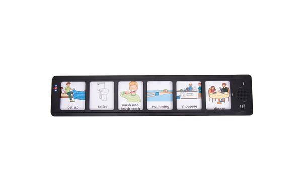 Het paneel is eenvoudig te gebruiken kinderen of leerkrachten kunnen maximaal 6 afbeeldingen of woorden invoegen en vervolgens een bijhorend bericht van 10 seconden per vak inspreken. Je hoeft enkel maar op de knop te drukken om het bericht af te spelen. Het paneel kan zowel horizontaal als verticaal bevestigd worden.