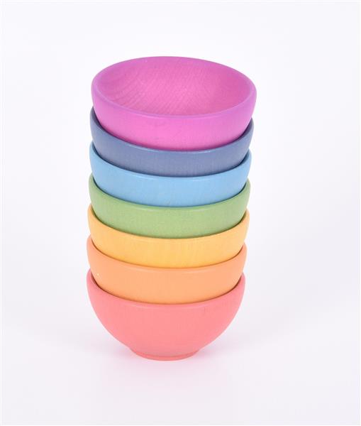 set van 7 houten kommetjes in regenboogkleuren (afm. 9,2 cm)