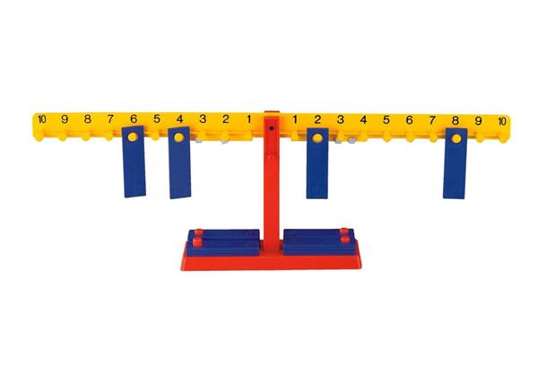 Zorg dat je weegschaal altijd in balans is door aan beide kanten dezelfde hoeveelheid te hebben. Op deze manier leert je kind dat er verschillende manieren zijn om tot dezelfde uitkomst te komen en oefenen ze op splitsen. Verder ontdekken ze ook dat als je het gewicht verder of dichter van het centrale punt hangt, het gewicht anders wordt verdeeld.