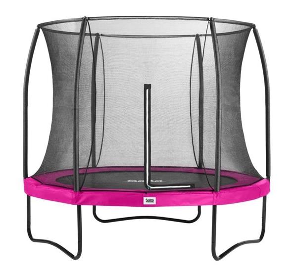 De Salta Comfort Edition trampolines zijn zowel op poten verkrijgbaar als voor in de grond (inground). Hierbij kan gekozen worden voor een ronde of rechthoekige variant. Deze Salta Comfort Edition trampoline is rond en heeft een diameter van 153 cm. Het frame heeft een totale hoogte van 48 cm. Het stalen frame is gegalvaniseerd en voorzien van een zwarte poedercoating voor een fraaie uitstraling. Verder is de trampoline uitgerust met een strak en modern veiligheidsnet. Door de gebogen palen en de stalen topring, behoudt het veiligheidsnet haar elegante vorm en blijft het fijnmazige net mooi gespannen. De dubbelzijdige rits zorgt ervoor dat het net zowel van de binnen- als buitenzijde netjes afgesloten kan worden. Het veiligheidsnet van de Comfort Edition trampoline is 155 cm hoog. Dit brengt de totale hoogte van de trampoline op 205 cm.