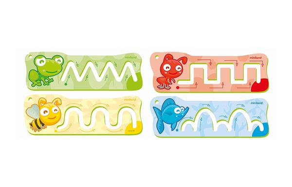 Vrolijke set van 4 verschillende schrijfpatronen om fijn-motorische vaardigheden te stimuleren. De kinderen oefenen het tekenen van verschillende lijnen op een leuke manier. Ze kunnen gebruikt worden met poltloden, kleurpotloden, krijt of vingerverf en op zowel op papier als in het zand.
