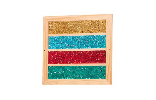 Vierkantig sensorisch muurbord met strepen dat zowel horizontaal als verticaal kan opgehangen worden. Het bord bestaat uit paillettenstof in een houten frame. Het stimuleert de nieuwsgierigheid en ondersteunt de motoriek. Door over de pailletten te wrijven, veranderen ze van kleur. Je kan zowel met je vingers als met bv een penseel tekeningen maken in de pailletten. Een mooie toevoeging aan muren, gangen, sensorische snoezelhoekjes en meer. Het bord heeft een rustgevend, kalmerend effect op kinderen door het voelen aan de fascinerende texturen en het glinsteren van de pailletten. Het bord is voorgeboord en moet aan de muur worden gemonteerd. De bevestigingen zijn niet inbegrepen.