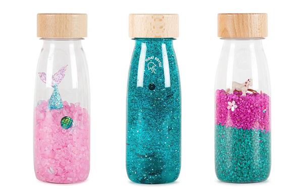 1 sensorische Sound Bottle - zeemeermin (afm. 15,5 x 4,5 cm) 1 sensorische Float Bottle - turquoise (afm. 15,5 x 4,5 cm) 1 sensorische Sound Bottle - eenhoorn (afm. 15,5 x 4,5 cm)