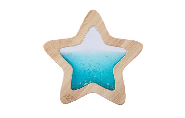 Sterren om bij weg te dromen. Deze blauwe, sensorische ster helpt jonge kinderen om met hun ogen te volgen wat er gebeurt en zorgt voor rust en concentratie. Laad je de ster op in natuurlijk licht of onder blacklight, dan licht hij op in het donker.