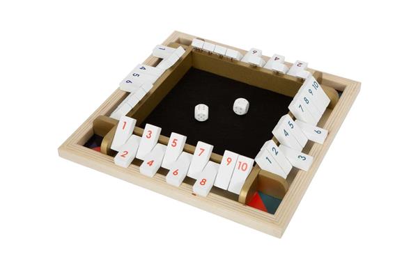 In dit spel van hoogwaardig massief hout moeten spelers proberen de cijfertegels om te draaien door middel van het werpen met de dobbelstenen. De som van de dobbelstenen kan ook van elkaar worden afgetrokken. De speler die de meeste cijfertegels heeft omgedraaid, wint de ronde. Jongere spelers leren ook getallen en tellen terwijl ze hun hoofdrekenen oefenen. Een echt klassiek, houten spel dat in elk gezelschapsspelassortiment thuishoort!