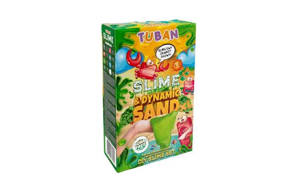 - Tuban PVA lijm in verschillende varianten, afhankelijk van de set: geurig, kleurrijk of transparant. - Tuban-activator voor het perfecte slijmresultaat. - Diverse additieven zoals minerale glitters, glow-in-the-dark stof, kunstsneeuw, minerale bolletjes of dynamisch zand voor unieke texturen en effecten. - Een handige spatel om het slijm eenvoudig te mengen. - Een opslagcontainer om je slijm veilig te bewaren.