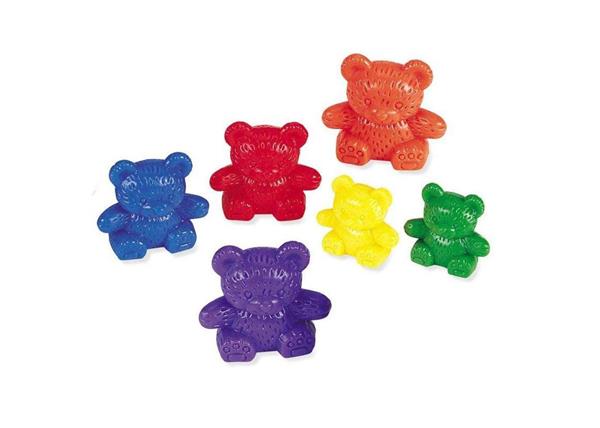 Tel, sorteer en classificeer met deze duurzame, zachte rubberen beertjes. De set bestaat uit 96 beertjes in 3 groottes en 6 kleuren (rood, geel, groen, blauw, oranje en paars). Ook zijn er 30 opdrachtkaarten (gedifferentieerd) beschikbaar. Deze worden gratis doorgestuurd via mail (PDF). Leuk om te gebruiken in combinatie met de vulvormen beren en het Trofast deksel beren sorteren .