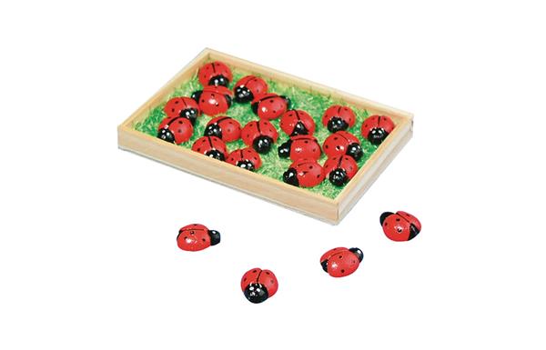 Een houten doosje met 18 schattige houten lieveheersbeestjes. De achterzijde is zelfklevend, trek eenvoudig de folie eraf en kleef ze op de gewenste plek. Te gebruiken als decoratie of om mee te knutselen.