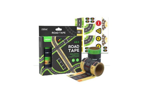Handige tape om je eigen verkeerskaart te maken. Deze set bevat 2 rollen van 5 meter en 10 vellen verkeersstickers waardoor je enorm veel mogelijkheden hebt om je eigen kaart samen te stellen.