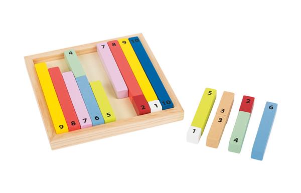 Leren kan leuk zijn! Deze 19 telstaven en het houten frame zijn gemaakt van FSC 100%- gecertificeerd hout en zijn ideale rekenhulpjes voor kinderen. Ze laten kinderen snel en duidelijk inzicht krijgen in de cijfers. Is tien een groter getal dan drie? Alle staven passen, mits in de juiste volgorde geplaatst, netjes in het houten frame.