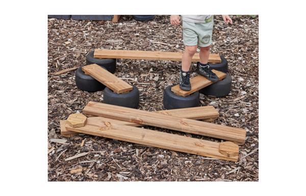 Laat kinderen hun fantasie gebruiken en elke dag opnieuw nieuwe paden ontdekken met de Tyre Walking - wandel planken!