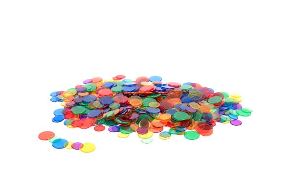 Transparante bingofiches in 6 verschillende kleuren en 2 verschillende groottes om te gebruiken bij verschillende activiteiten zoals tellen, sorteren, kleuren herkennen, ... Ook zeer geschikt om te gebruiken op de lichttafel.