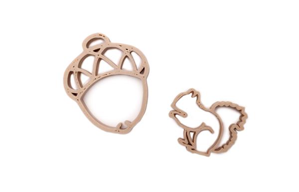 2 uitstekers - eekhoorn en eikel (afm. eikel 6 x 6,5 cm)