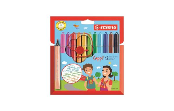 Met de Stabilo Cappi viltstift zijn kwijtgeraakte doppen verleden tijd. Dankzij de unieke en praktische dopring waar de losse doppen aan geregen kunnen worden raakt er nooit meer één kwijt. Door zijn ergonomische gripzone en de speciale tubevorm ligt hij perfect in de hand en kan tegelijkertijd niet van de tafel rollen. Met zijn uitdrogingsbescherming van 24 uur staat hij garant voor urenlang creatief werken.