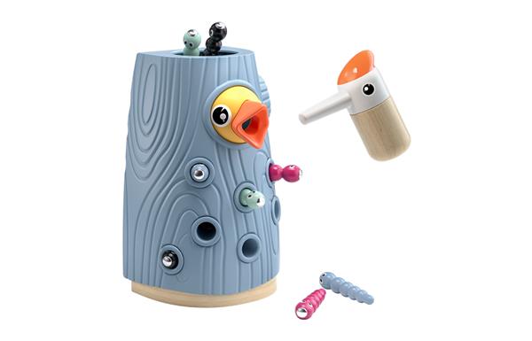 De kleurrijke wormen verstoppen zich in een boomstam. Zodra kinderen de oudervogel dicht genoeg bij de wormen houden, vangen ze dankzij de magneten de kleine diertjes op. Het spel vraagt hen ook om de eerste kleuren en cijfers te leren door te spelen met de kleurrijke wormen. De specht voeren bevordert de fijne motoriek, oog-handcoördinatie en kleurherkenning van kinderen. Tegelijkertijd ondersteunt het rollenspel ook de ouder-kindrelatie. Leeftijd +24m