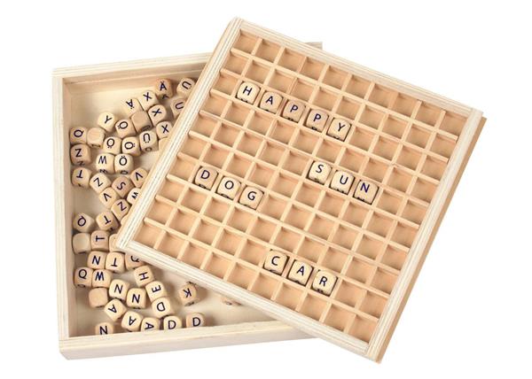 Maak met de blokjes zelf woorden op het deksel van de opbergdoos. Dankzij de vakjes blijven de letterblokjes goed liggen. Maak korte en lange woorden of speel samen met iemand en leg om ter snelste een woord.