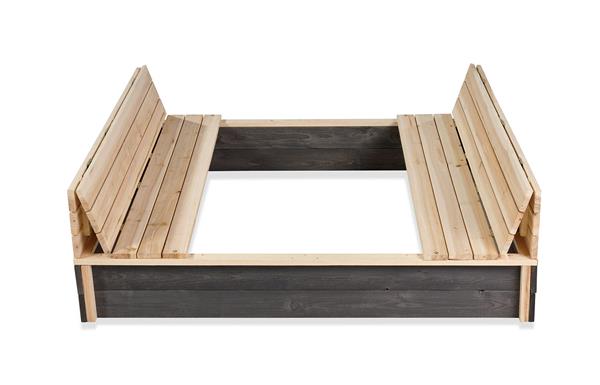 In deze zandbak met bankjes kunnen kinderen de mooiste zandkastelen en zandtaartjes maken. Deze grote zandbak heeft twee stevige zitbankjes met rugleuning. En ben je klaar met spelen? Dan kun je de zitbankjes gebruiken om de zandbak volledig af te sluiten zodat het zand in weer en wind schoon en in de zandbak blijft.